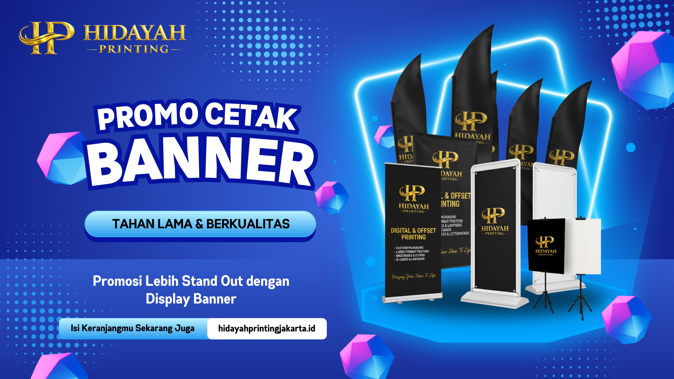 hidayahprintingjakarta.id merupakan jasa percetakan profesional yang siap melayani berbagai kebutuhan cetak dengan hasil berkualitas. Berlokasi di Jakarta Timur, tepatnya di Jalan Balai Pustaka Baru No. 7G, Rawamangun, kami menyediakan layanan cetak yang lengkap, mulai dari perlengkapan perkantoran hingga media promosi usaha. Setiap proses produksi dikerjakan dengan perhatian pada detail serta didukung oleh teknologi mesin cetak terbaru agar hasil lebih presisi dan maksimal.